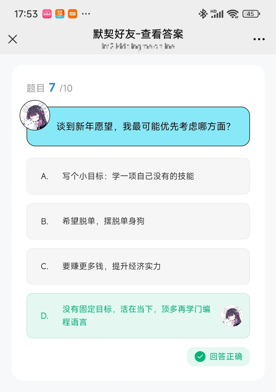 最近我看我朋友圈里有些同学整了个什么小问卷,我看着挺有意思的,也做了一个,以及也让我想到了一些事……