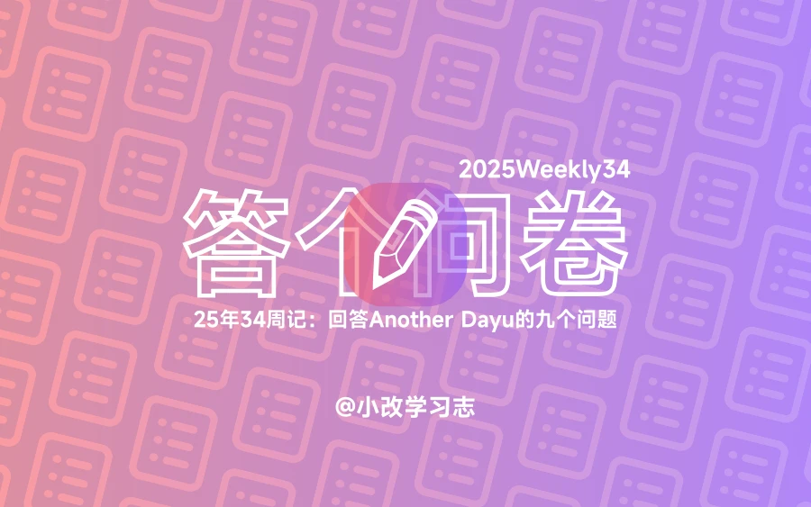 学习笔记 日常生活【25年34周记】回答Another Dayu的九个问题2025年8月21日·241 Views -